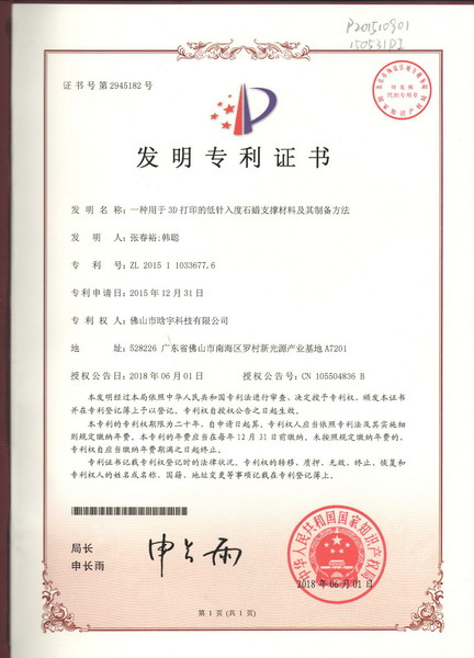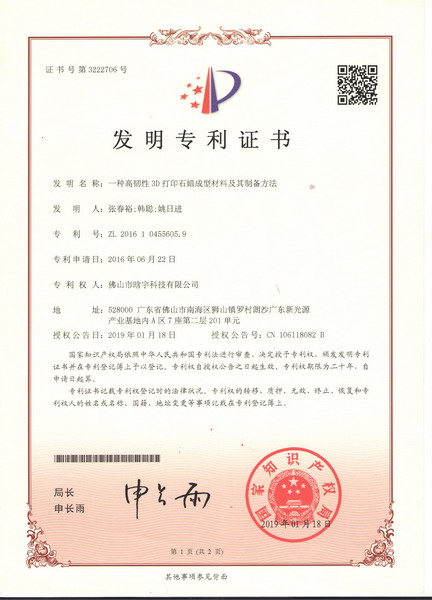 Today, 3D printing waxes for jewelry casting and high-end precision casting applications and 3D sand casting printer have been ready for delivery, and the mass production oriented 3D wax printer will be ready for shipment in middle of Year 2019.